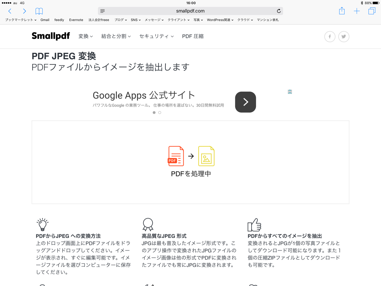 いろいろ調べてみましたが、適当なアプリが見当たらなかったので、Dropboxと変換サイトを使う作戦で行きました。